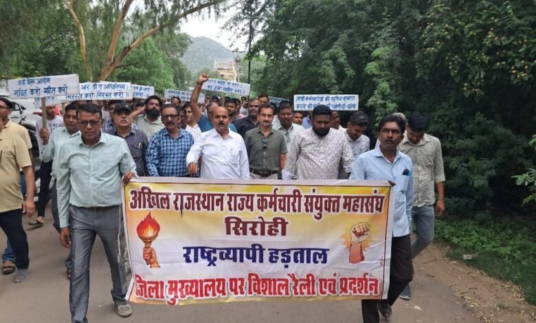 राजस्थान शिक्षक संघ(प्रगतिशील)के जिला प्रवक्ता गुरुदीन वर्मा के अनुसार महासंघ के जिलाध्यक्ष धर्मेन्द्र गहलोत ने रैली को सम्बोधित करते हुए कहा केन्द्र व राज्य सरकार पीएफआरडीए एक्ट रद्दकर पुरानी पेंशन बहाली की स्थिति स्पष्ट नही कर कर्मचारियों में रोष उत्पन्न कर रही है साथ ही आंठवे वेतन आयोग का गठन कर अधिसूचना जारी करने में अनावश्यक समय व्यथित किया जाना कर्मचारी विरोधी नीति को अंगीकार कर रहा हैं। गहलोत ने कहा कि राज्य सरकार कर्मचारियों के स्वास्थ्य की सुविधा के लिए वरदान साबित हो रही आरजीएचएच सुविधा में निरन्तर कटौतियां कर रही है। इस योजना को पुनः पूर्व के मुल स्वरूप में लाई जाये, संविदा भर्ती बन्द कर नियमित भर्ती की जाये, संविदा कर्मियों का न्यूनतम वेतन 26 हजार रूपये करने, समस्त विभागों की लम्बित डीपीसी अविलम्ब करने, सरकारी विभागों का निजीकरण बन्द करने, ग्रामीण क्षेत्र में कार्यरत कार्मिकों का 10 प्रतिशत ग्रामीण भत्ता स्वीकृत करवाने, राज्य कर्मचारियों के लिए पारदर्शी स्थानान्तरण नीति लागू करने,18 माह के फ्रिज किये गये महंगाई भत्तो का नकद भुगतान करने, राष्ट्रीय शिक्षा नीति को रद्द करने, राज्य कर्मचारियों के 53 हजार करोड रूपये जीपीएफ खाते में जमा कराने, प्रत्येक राज‌कीय विद्यालयों में शारीरिक शिक्षक का पद स्वीकृत कराने, सहायक कर्मचारी को एम टी एस घोषित करने, सहायक कर्मचारीयों के लिए 60 हजार घोषित पदो पर शीघ्र भर्ती करने, वर्क चार्ज कर्मियों को पदोन्नति के अवसर देने, नो-वर्क नो-पे कर्मचारियों के अधिकारों का हनन है। इसे अविलम्ब प्रत्याहारित करने, महासंघ के घटक संगठनों के माँग-पत्रो पर सम्बन्धित विभाग के मंत्रीगण, शासन सचिवों एवं विभागाध्यक्षों से वार्ता हेतु कैलेण्डर जारी करने सहित 11 सूत्री मांग पत्र पर शीघ्र राज्य सरकार कार्यवाही करें। इस अवसर पर कर्मचारी नेता पशुपालक संघ से जिलाध्यक्ष शंकर लाल तांबियाड , विकास अधिकारी संघ से जिलाध्यक्ष जोगेश टेलर, शिक्षक संघ(प्रगतिशील) जिला मंत्री छगनलाल भाटी,ब्लॉक अध्यक्ष देशाराम मीना,आबूरोड से ब्लॉक अध्यक्ष बिरजु चौधरी, पिंडवाड़ा से ब्लॉक अध्यक्ष रमेश कुमार दहिया, रेवदर से ब्लॉक अध्यक्ष राहुल कुमार एवं शिक्षक नेता अमर सिंह,कान्तिलाल मीणा,मनोहर सिंह चौहान, शैतान सिंह देवड़ा,शाहिल शेख,धर्मेन्द्र खत्री,शकील अली,रमेश रांगी,जोराराम गहलोत,सत्यनारायण बैरवा, किशोर कुमार, सत्येन्द्र सिंह राठौड़ ने भी विचार व्यक्त किये।