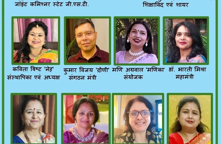– श्रीमती कविता बिष्ट ‘नेह’ (अध्यक्ष), डॉ. भारती मिश्रा (महामंत्री), श्रीमती मणि अग्रवाल ‘मणिका’ (संयोजक)