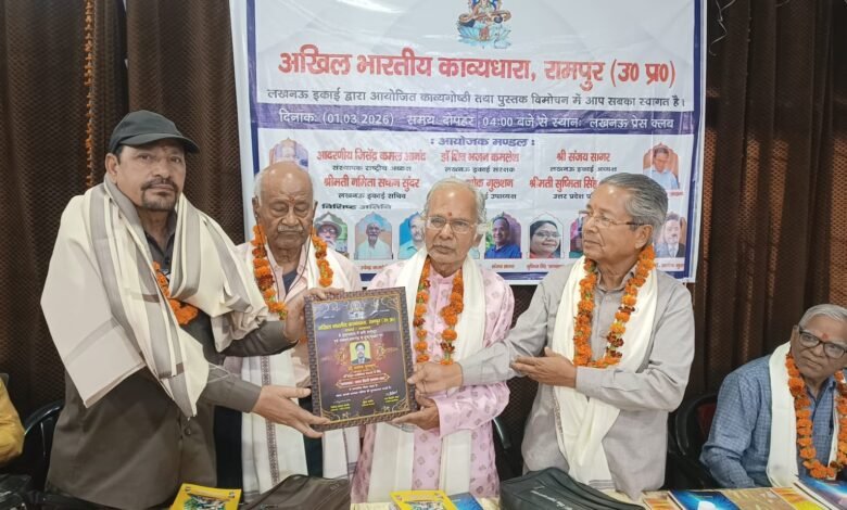 utkarshexpress.com बहराइच। अखिल भारतीय काव्यधारा रामपुर उ०प्र० द्वारा यू0पी0 प्रेस क्लब लखनऊ में होलिका दहन की पूर्व संध्या पर आयोजित पुस्तक लोकार्पण, कवि सम्मेलन एवं सम्मान समारोह कार्यक्रम में विगत चार दशक से चिकित्सा, साहित्य तथा समाज सेवा में रत सेवानिवृत्त आयुर्वेदिक चिकित्सा अधिकारी तथा क्षेत्रीय आयुर्वेदिक एवं यूनानी अधिकारी, कवि, साहित्यकार, एवं समाजसेवी डॉ0 अशोक गुलशन को संस्था के संस्थापक एवं राष्ट्रीय अध्यक्ष जितेन्द्र कमल आनन्द द्वारा काव्यधारा काव्यशिल्पी सम्मान-2026 से सम्मानित किया गया।