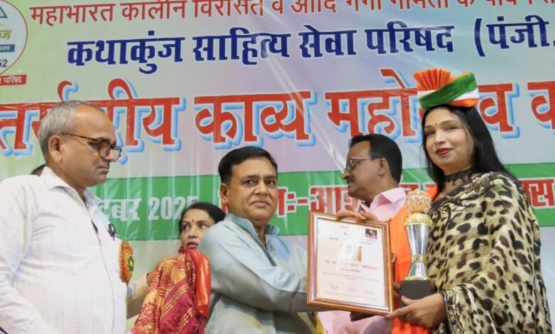 utkarshexpress.com देहरादून – देहरादून की मणि अग्रवाल “मणिका” को उनकी साहित्यिक विशेषताओं के लिए लखीमपुरखीरी की तहसील मोहम्मदी में “कथा कुंज साहित्य सेवा परिषद रजि.” द्वारा एक अंतर्राष्ट्रीय सम्मान समारोह में “केतकी साहित्य रत्न” सम्मान से सम्मानित किया गया. इस सम्मान ने समस्त देहरादून को गौरवान्वित किया क्योंकि कथा कुंज संस्था विगत 3 वर्षों से यह आयोजन कर रही है जिसमें वह प्रतिवर्ष देश- विदेश से 21 साहित्यिक प्रतिभाओं का चयन कर महिला साहित्यकारों को “केतकी साहित्य रत्न” एवं पुरुषों को “गोमती साहित्य रत्न” से सम्मानित करती है और इसमें संस्था द्वारा मणिका का चयन किया जाना देहरादून के लिए गर्व का विषय रहा. 7 अक्टूबर को सम्पन्न हुआ 2025 का यह चतुर्थ आयोजन रहा.