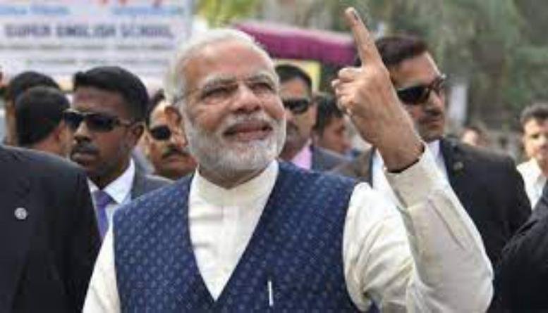 वोटिंग के बाद सड़क पर पैदल ही निकल पड़े पीएम मोदी
