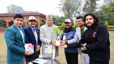 त्रिवेंद्र सिंह रावत और जोत सिंह गुनसोला मतगणना स्थल पर लगे गले