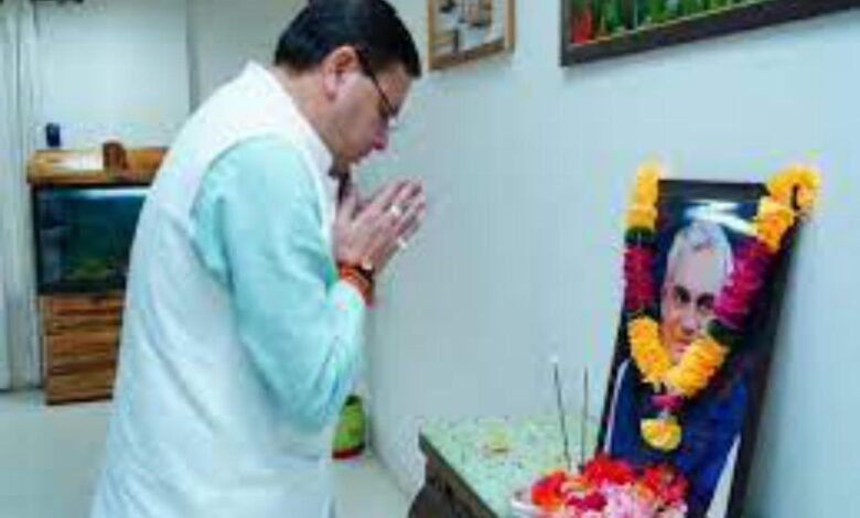 उत्तराखण्ड के मुख्यमंत्री पुष्कर सिंह धामी ने देश के पूर्व प्रधानमंत्री भारत रत्न, स्वर्गीय अटल बिहारी वाजपेयी की जयंती पर श्रद्धा सुमन अर्पित कर श्रद्धांजलि दी